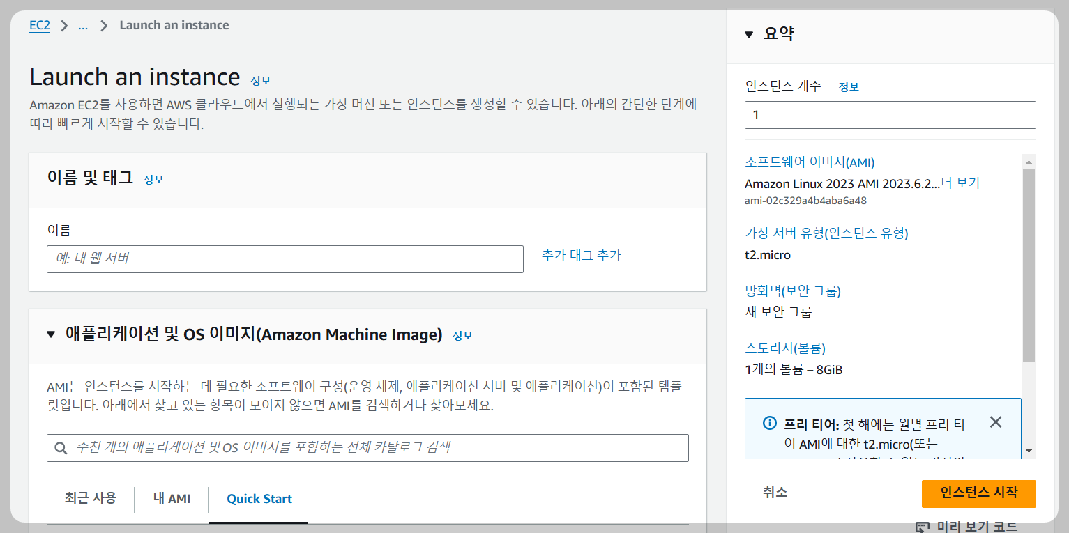 - 이름 및 태그 : 생성할 인스턴스의 이름