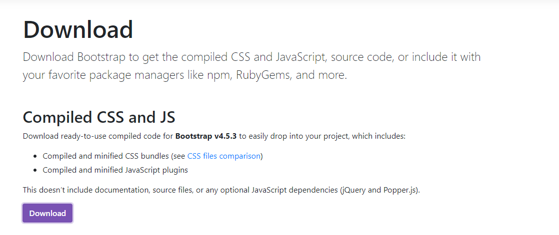Compiled CSS and JS에 있는 Download 버튼을 누르면 지정한 버전의 Bootstrap 파일이 Download 됩니다.