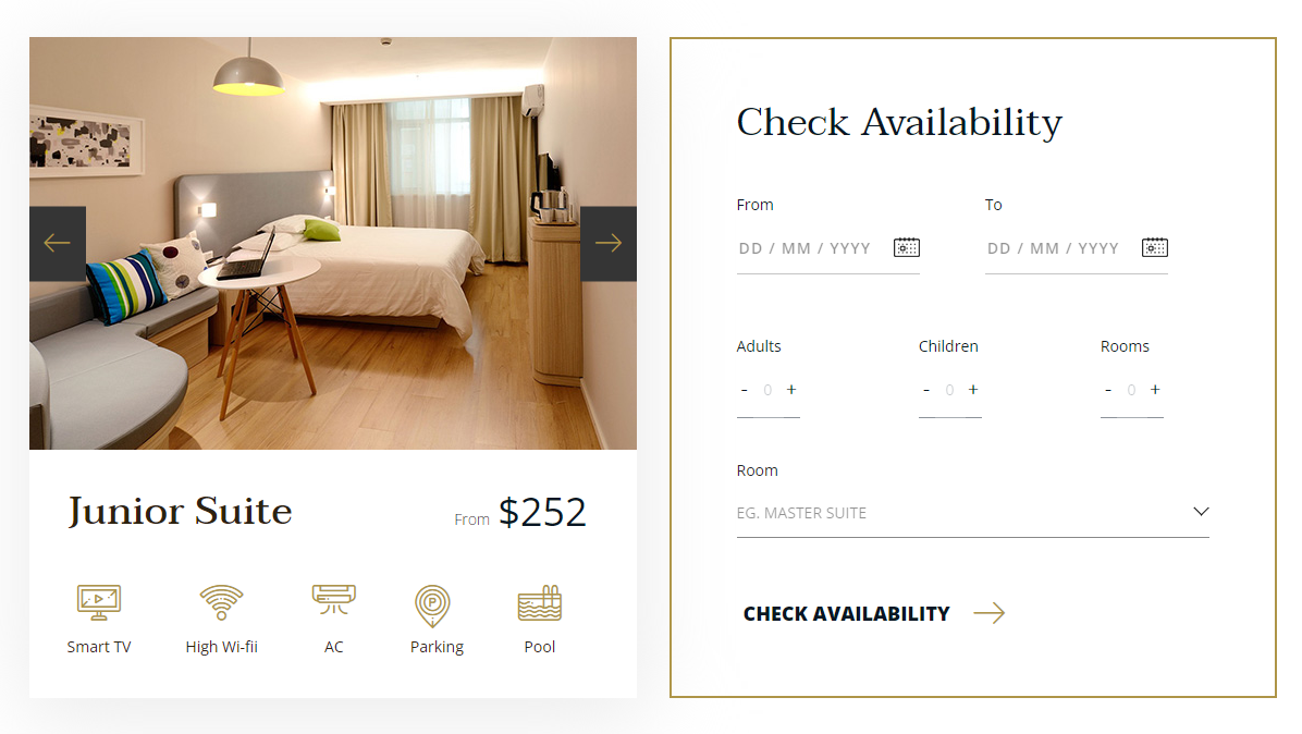 Hotel is a free Bootstrap 4 HTML5 responsive hotel website template. Features like hero header, drop-down menu, booking form, call to action button, testimonials are bundled with the package. Flexible and easily customizable code will allow you to customiz