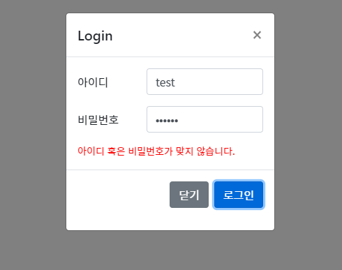 // 하지만 event.preventDefault() 를 작성하면 에러메세지가 나와도 modal창은 닫히지 않습니다.