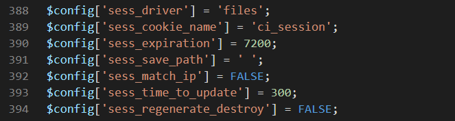 - /application/config/config.php 파일의 388 ~ 394번째에 session 설정하는 부분이 있습니다.