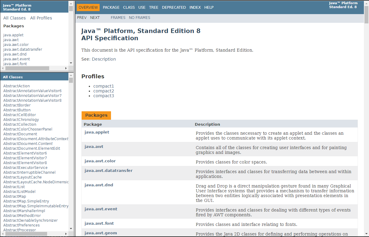 우선 API를 다운로드해야 합니다, JDK 8 API를 사용합니다.